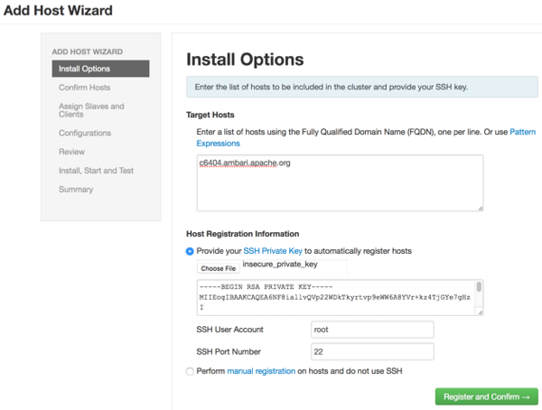 The Add Host wizard provides a sequence of prompts similar to those in the Ambari Cluster Install wizard.