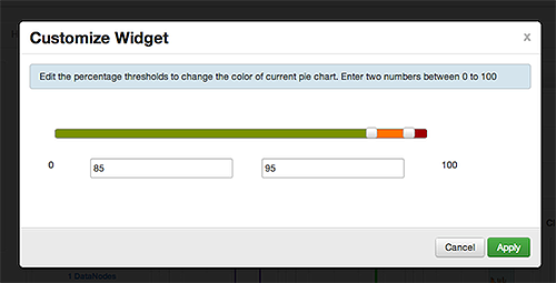 In this example, you can adjust the thresholds at which the HDFS Capacity bar chart changes color, from green to orange to red.