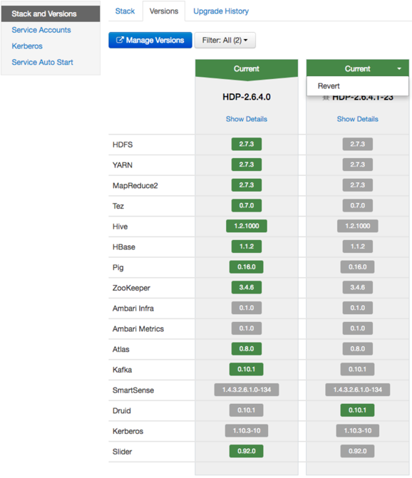 When you perform a Patch Express Upgrade of a service, a dependent service may stop and require a manual restart. For example, a patch Express Upgrade of HDFS could stop HBase. In such cases, you must manually re-start HBase using the Ambari Web UI > Service Actions menu.