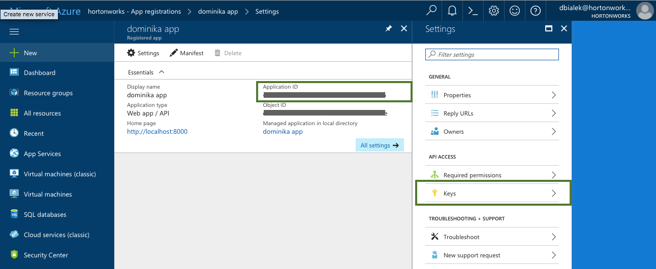 To obtain the App ID (actually Application ID) and an application key from Azure Active Directory: