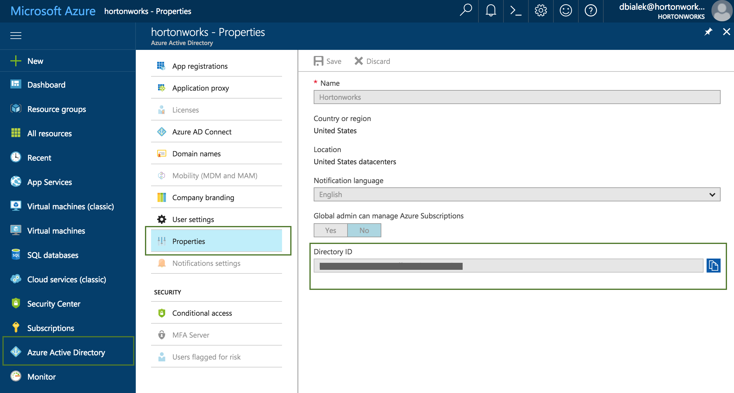 Tenant Id Copy and paste your Directory ID from your Active Directory > Properties.