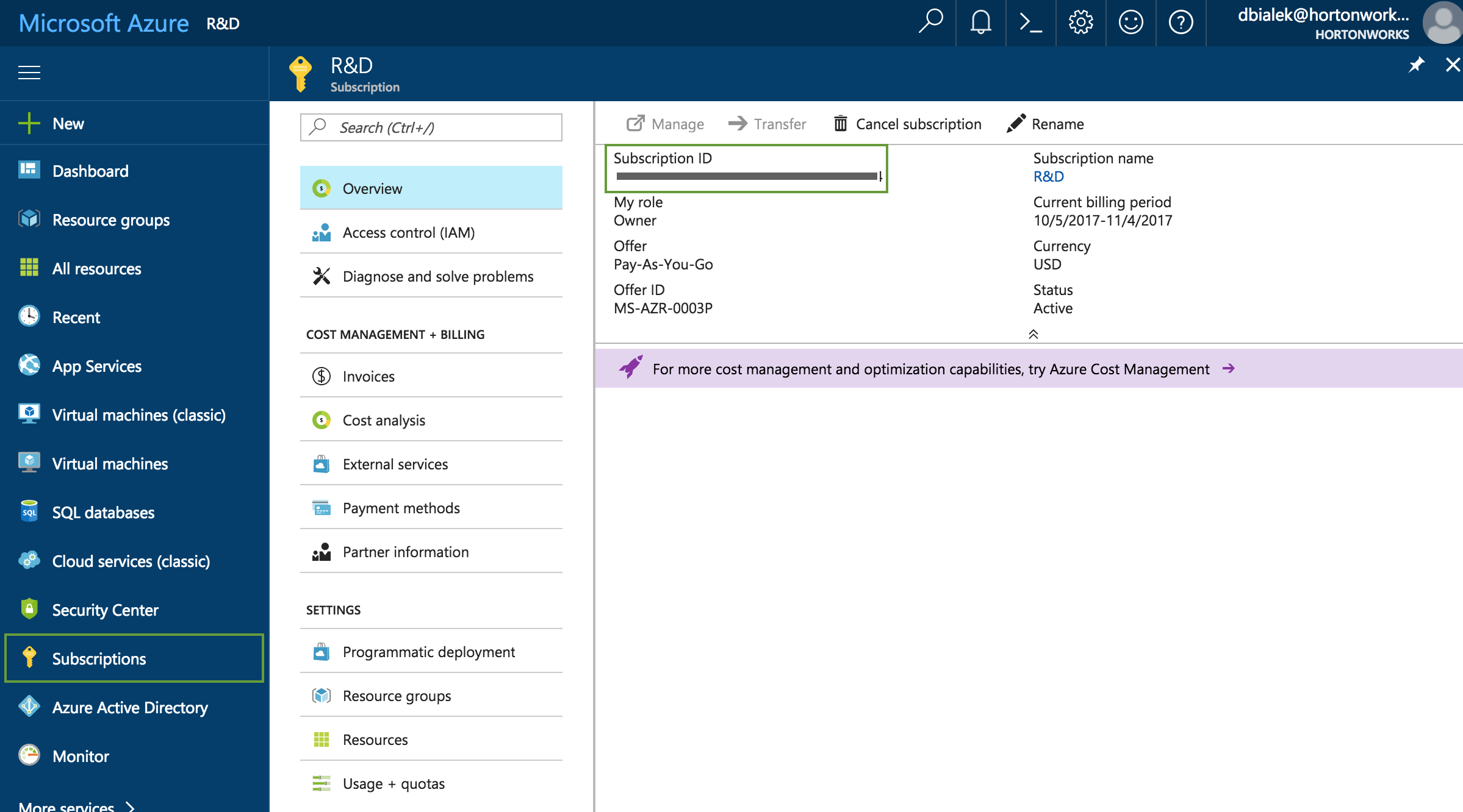 Subscription Id Copy and paste the Subscription ID from your Subscriptions.