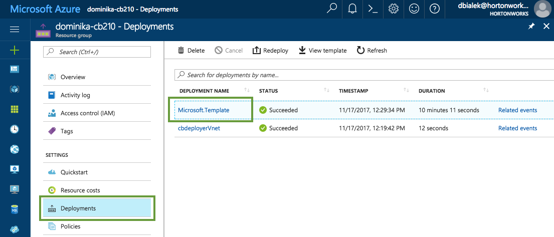2. Once you've navigated to your resource group, click on Deployments and then click on Microsoft.Template: