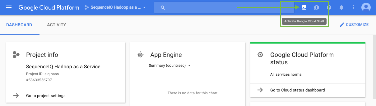 Open the Google Cloud Shell by clicking on the