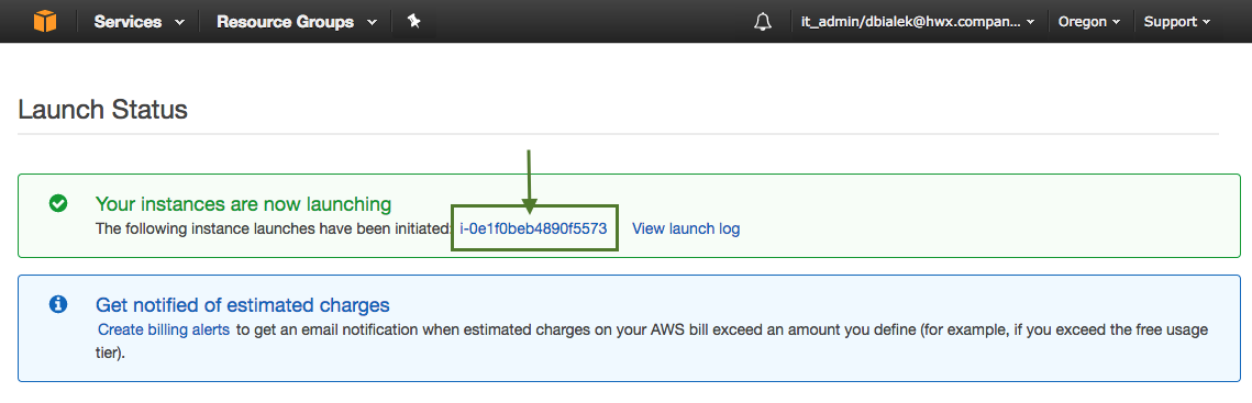 Click on the instance ID to navigate to the Instances view in your EC2 console.