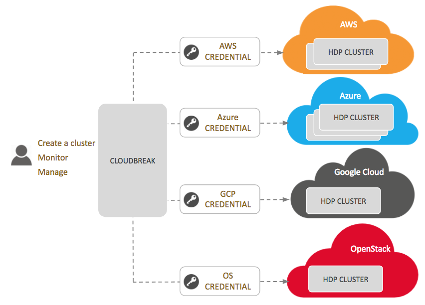 Cloudbreak uses the Cloudbreak credential to authenticate with your cloud provider account and provision cloud resources required for the HDP clusters.