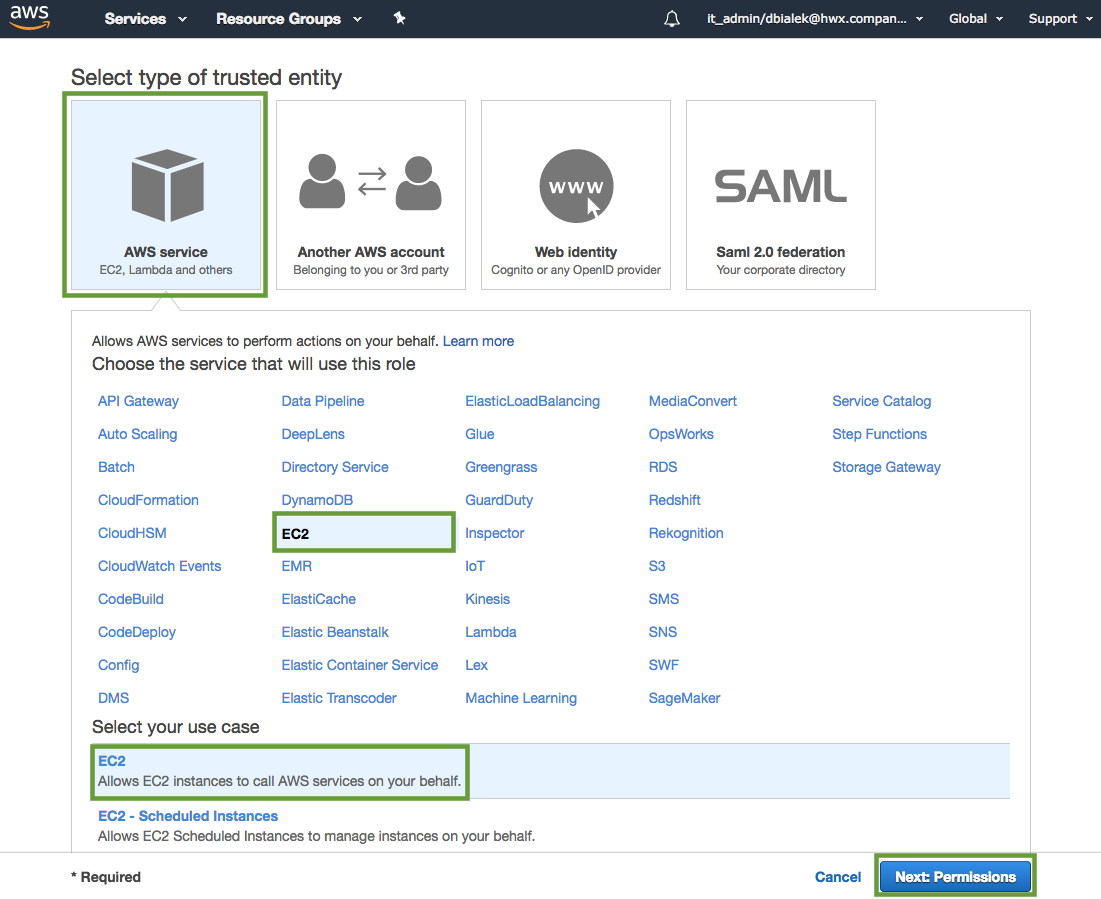 When done, click Next: Permissions to navigate to the next page in the wizard.