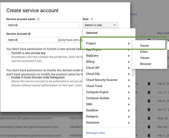 - The service account that you configured under Configure access to GCS must allow access to the bucket.