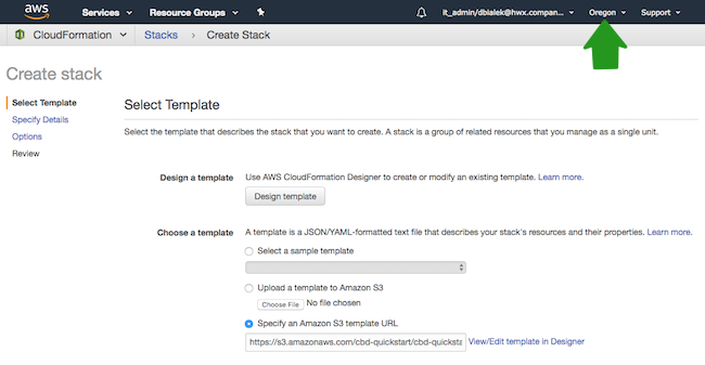 Region Link us-east-1 (N. Virginia) Launch the CloudFormation Template in US East us-west-1 (N. California) Launch the CloudFormation Template in US West (N. California) us-west-2 (Oregon) Launch the CloudFormation Template in US West (Oregon) eu-central-1 (Frankfurt) Launch the CloudFormation Template in EU Central eu-west-1 (Dublin) Launch the CloudFormation Template in EU West sa-east-1 (São Paulo) Launch the CloudFormation Template in South America ap-northeast-1 (Tokyo) Launch the CloudFormation Template in Asia Pacific (Tokyo) ap-southeast-1 (Singapore) Launch the CloudFormation Template in Asia Pacific (Singapore) ap-southeast-2 (Sydney) Launch the CloudFormation Template in Asia Pacific (Sydney) - The Create stack wizard is launched in the Amazon CloudFormation management console:
