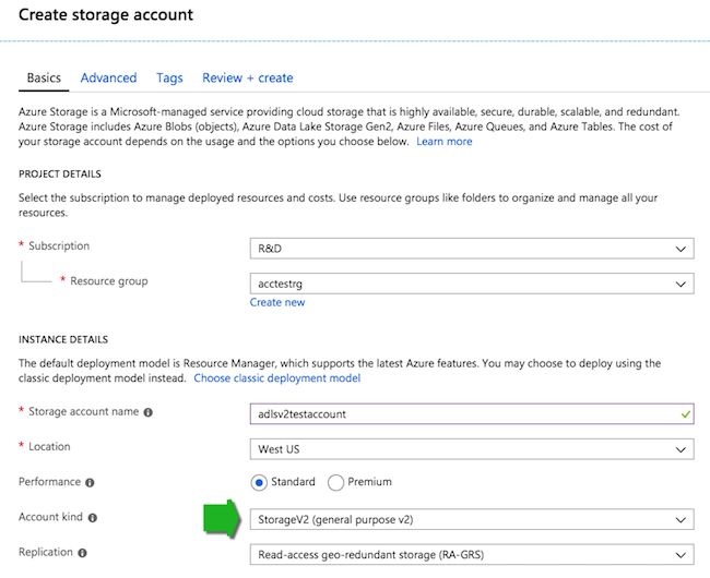 If you would like to use ADLS Gen2 to store your data, you must have an Azure subscription and a storage account of type “StorageV2”.