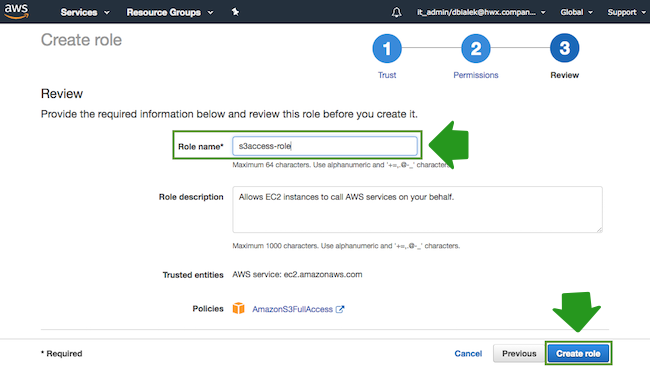 In order to configure access from your cluster to Amazon S3, you must have an existing IAM role which determines what actions can be performed on which S3 buckets.