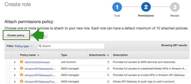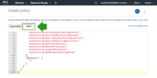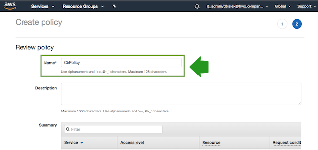 - Click Create policy and the create policy wizard will open in a new browser tab: