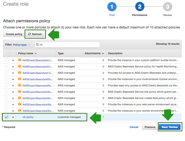 - Return to the previous browser tab where you started creating a new role (since the create policy wizard was opened in a new browser tab).