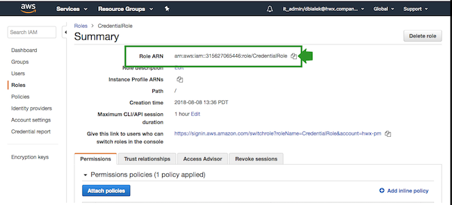 To perform these steps, you must know the IAM Role ARN corresponding to the CredentialRole configured as part of the prerequisites.