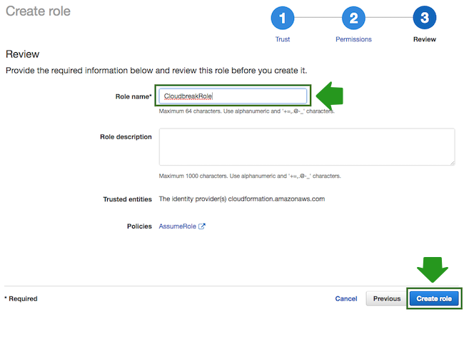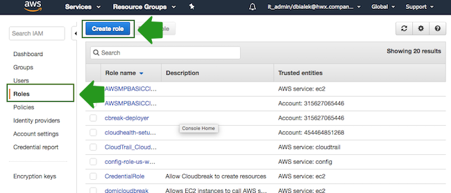 As an outcome of this step, the CloudbreakRole should be created in your IAM console on AWS.