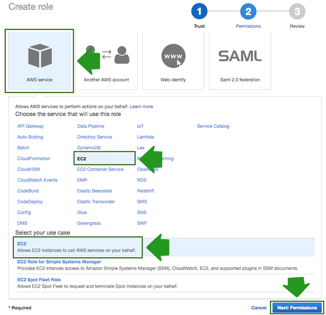 - When done, click Next: Permissions to navigate to the next page in the wizard.