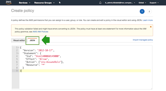 policy, such as “AssumeRole”: