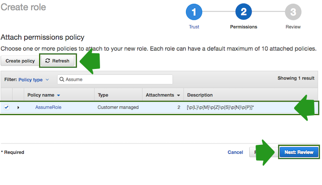 - Click Refresh. Next, find the policy that you just created and select it by
