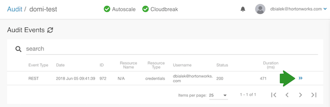 3. The Audit Events page including events related to the resource is displayed. The most recent event is listed at the top of the page. The following information in included for each event: