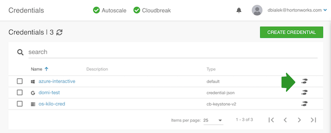 2. From the list of resources (for example clusters), find the specific resource (for example “test-cluster”) and click on the icon next to it: