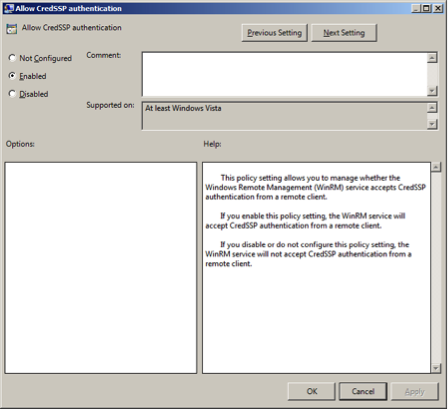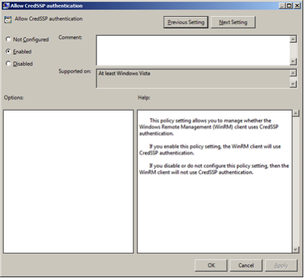 • Allow CredSSP authentication and click OK.