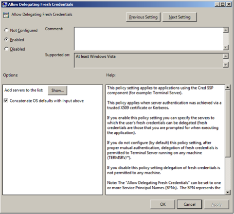 • Select Enabled to allow delegation fresh credentials.