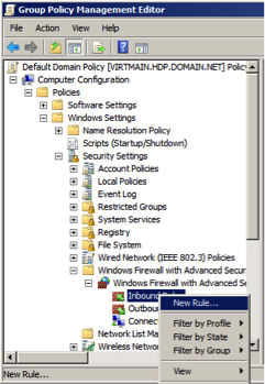 • Go to Computer Configuration -> Policies -> Windows Settings -> Security Settings -> Windows Firewall with Advanced Security .