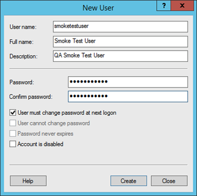 5. Create a smoketest user account in Windows: