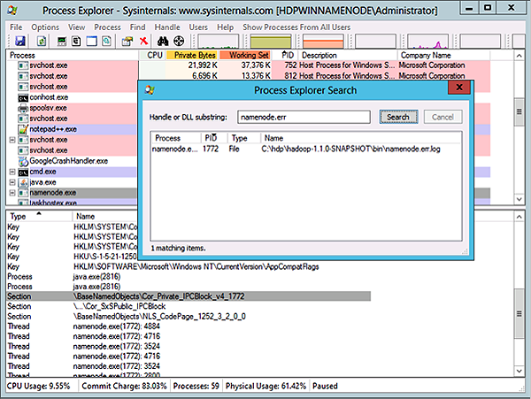 For example, you can use Process Explorer to troubleshoot the file lock issues that prevent a particular process from starting, as shown in the following screen shot: