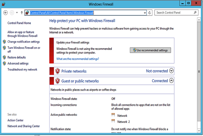 • Verify if a firewall is enabled on the host machine: Go to Control Panel -> All Control Panel Items -> Windows Firewall.