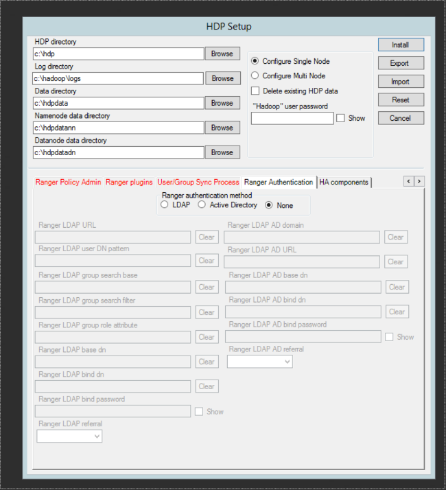 9. Click the Ranger Authentication tab in the middle of the HDP Setup Form.