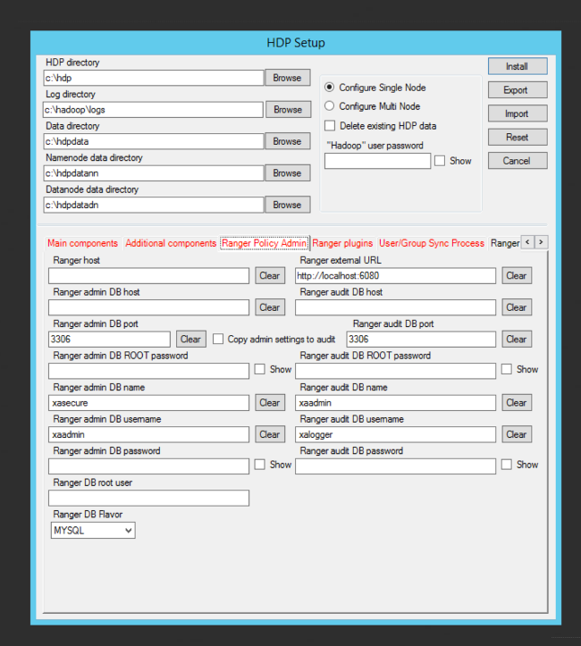 2. Click the Ranger Policy Admin tab in the middle of the HDP Setup Form.