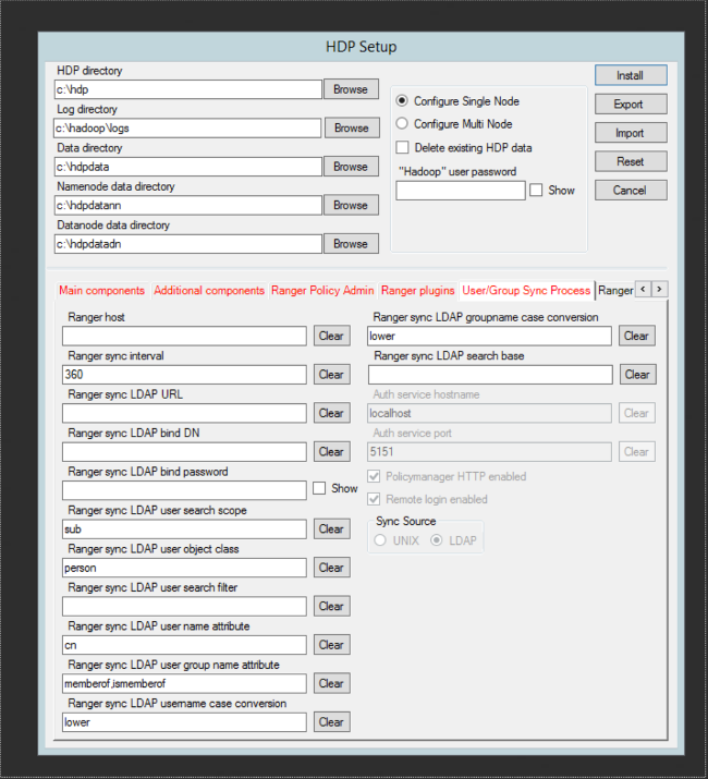 6. Click the User/Group Sync Process tab in the middle of the HDP Setup Form.