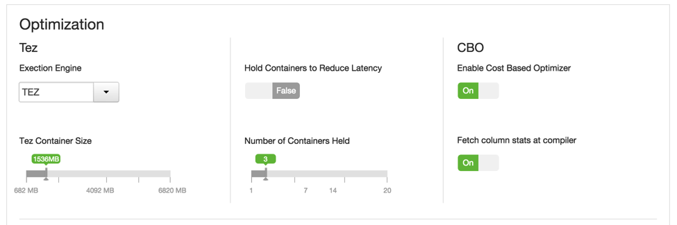HiveServer2 and Tez settings can also be set from the Hive configuration page in Ambari.