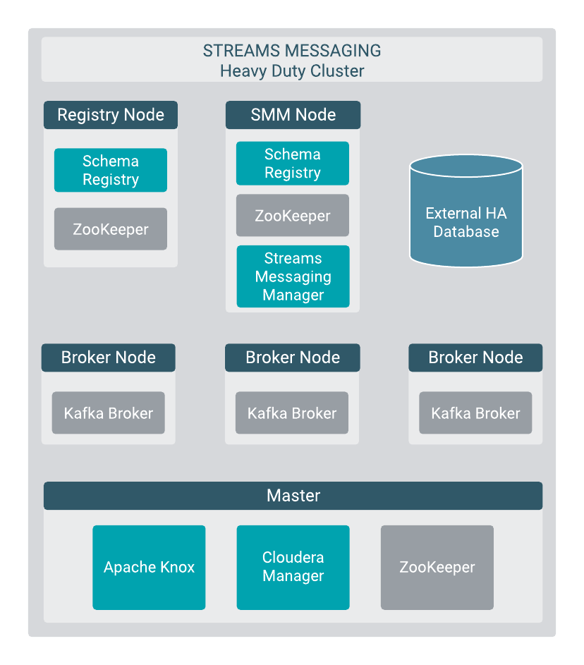 You can use the Streams Messaging: Heavy Duty cluster definition in production scenarios. The cluster definition includes:
