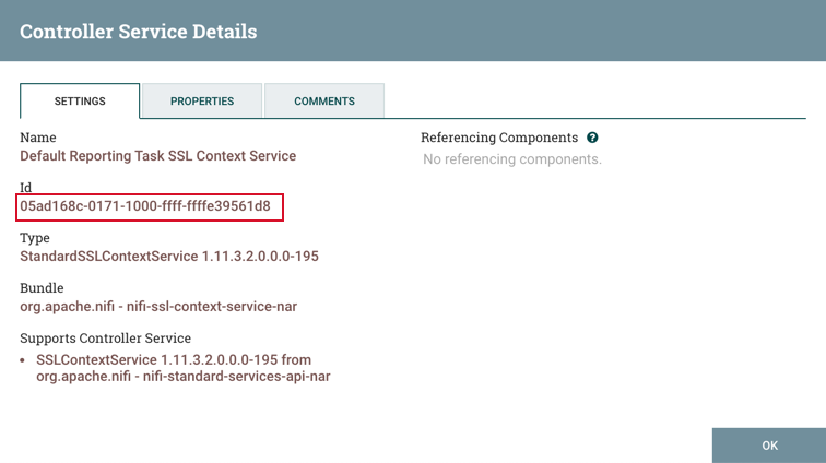 To locate the ID of the SSL Context Service: