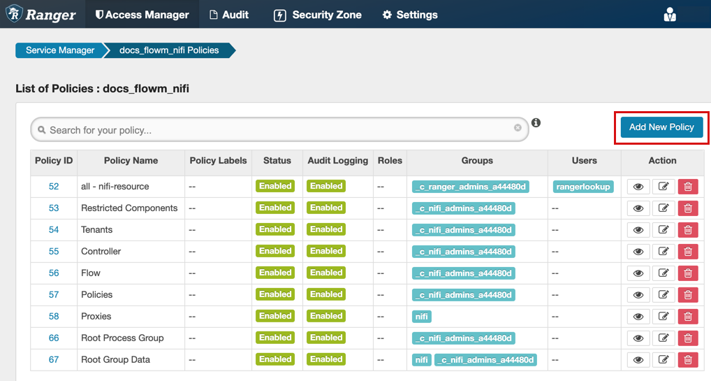 policies for Apache NiFi.
