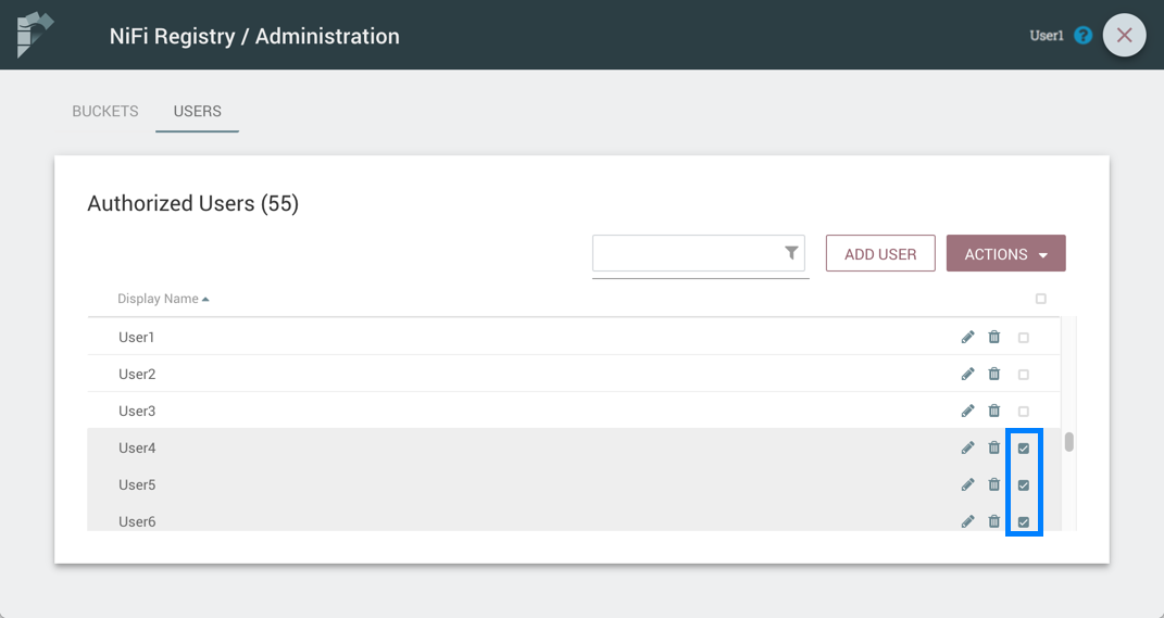 1. Select the checkboxes in the rows of the desired users to delete.