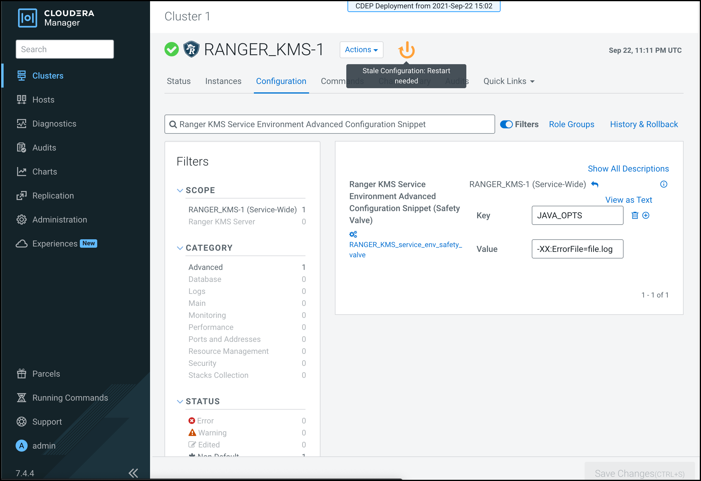 - Ranger KMS Server Environment Advanced Configuration Snippet