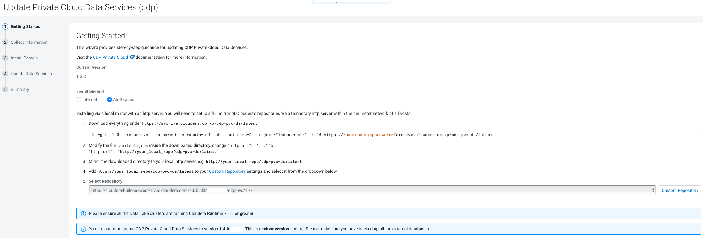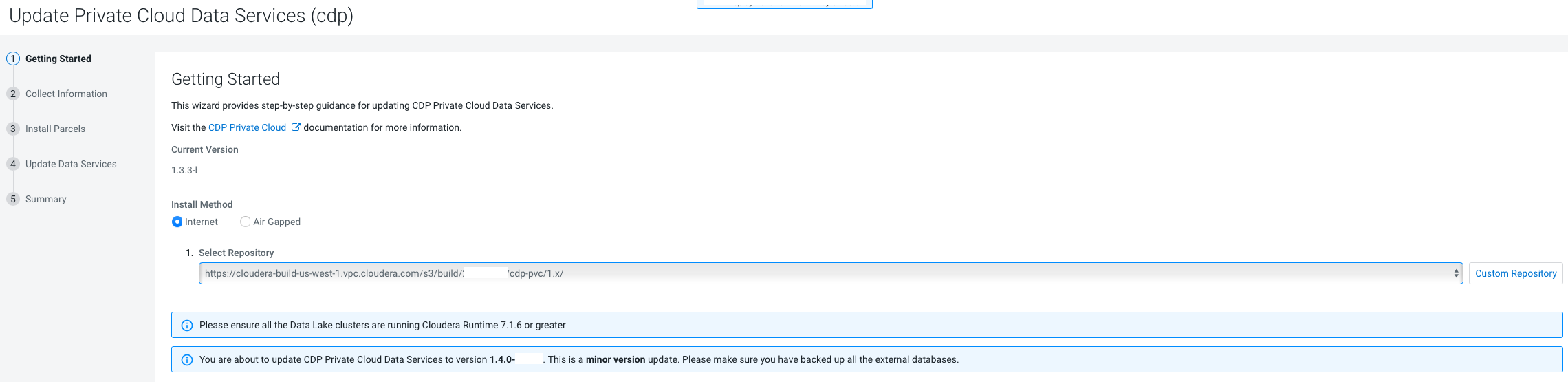You can update your existing CDP Private Cloud Data Services 1.3.3 to 1.4.0 or 1.4.0-H1 without requiring an uninstall.