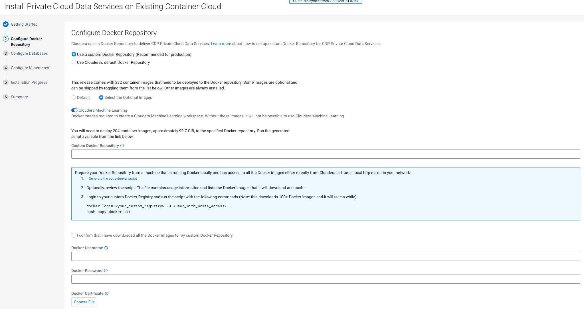 On the Configure Docker Repository page, you must select