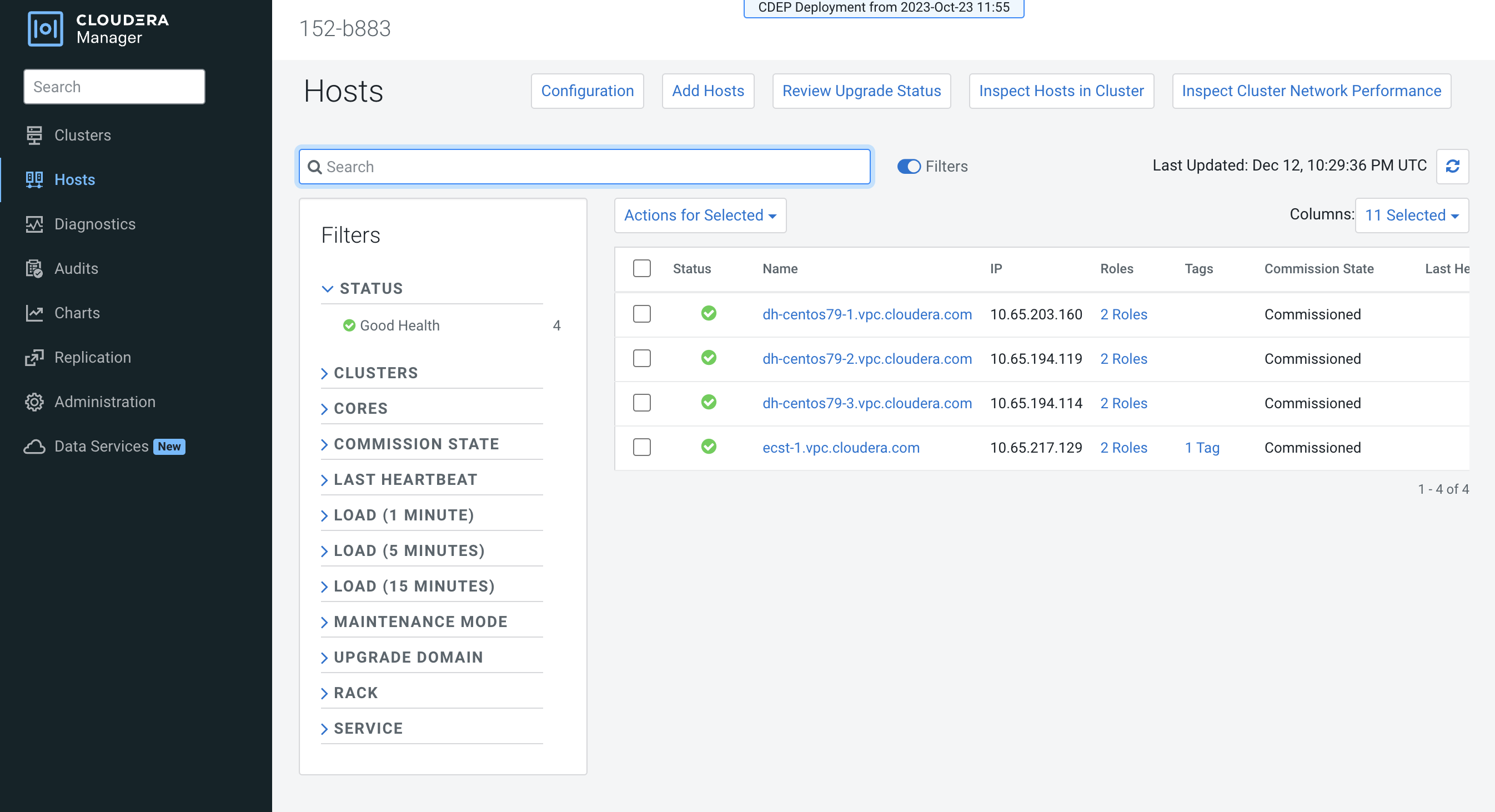 On the Cloudera Manager home page, click the ECS Cluster, then select