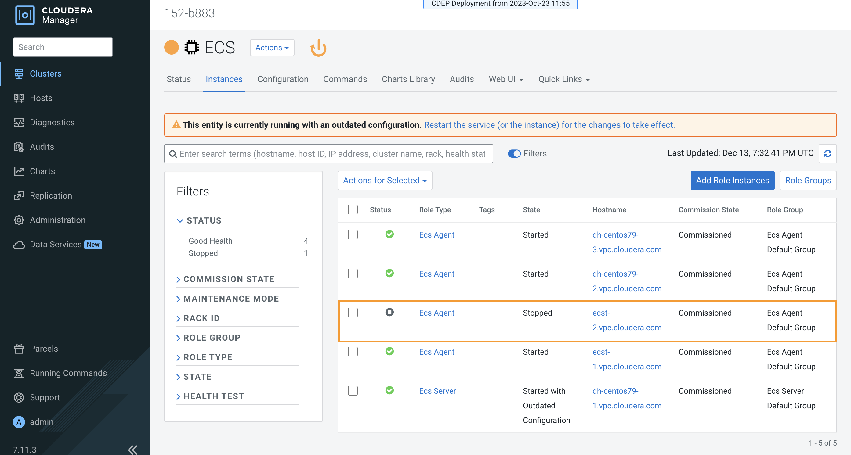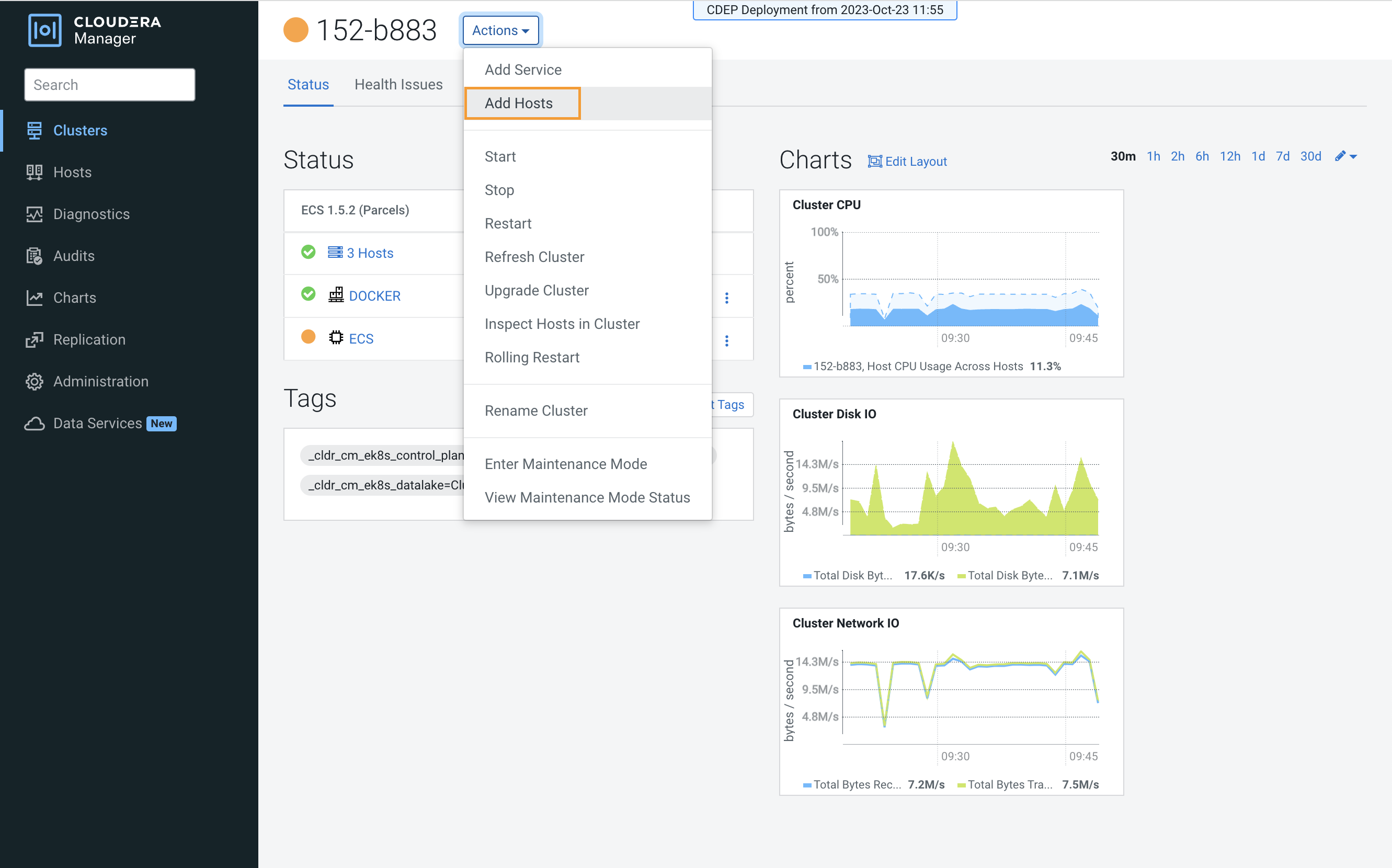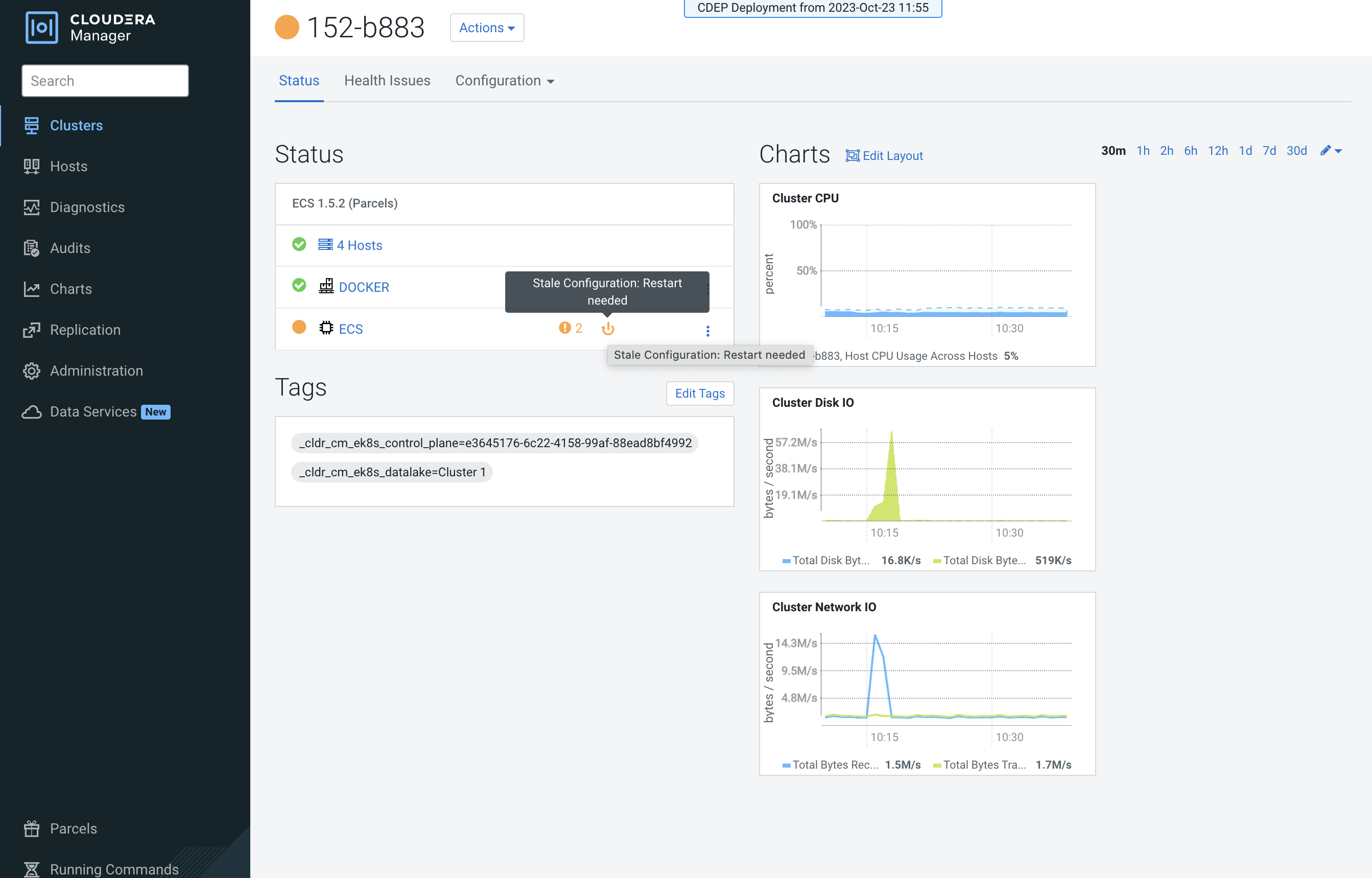 On the Cloudera Manager home page, click the ECS Cluster, then select