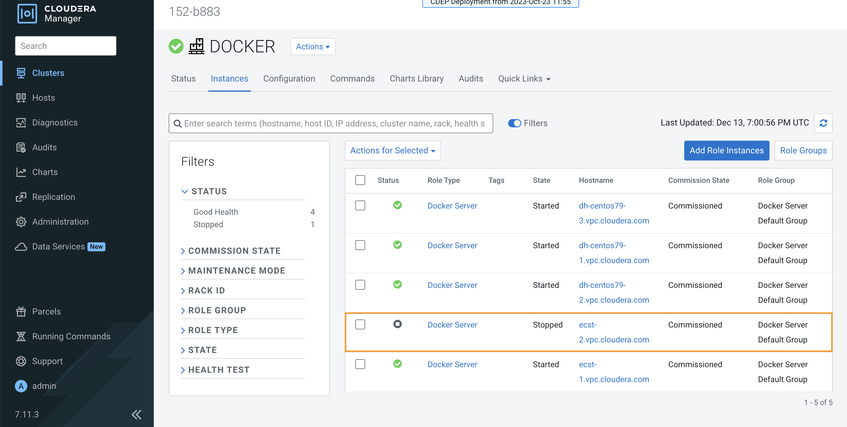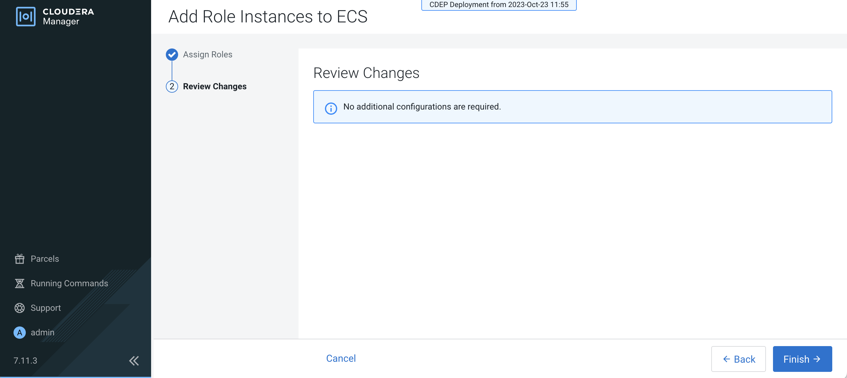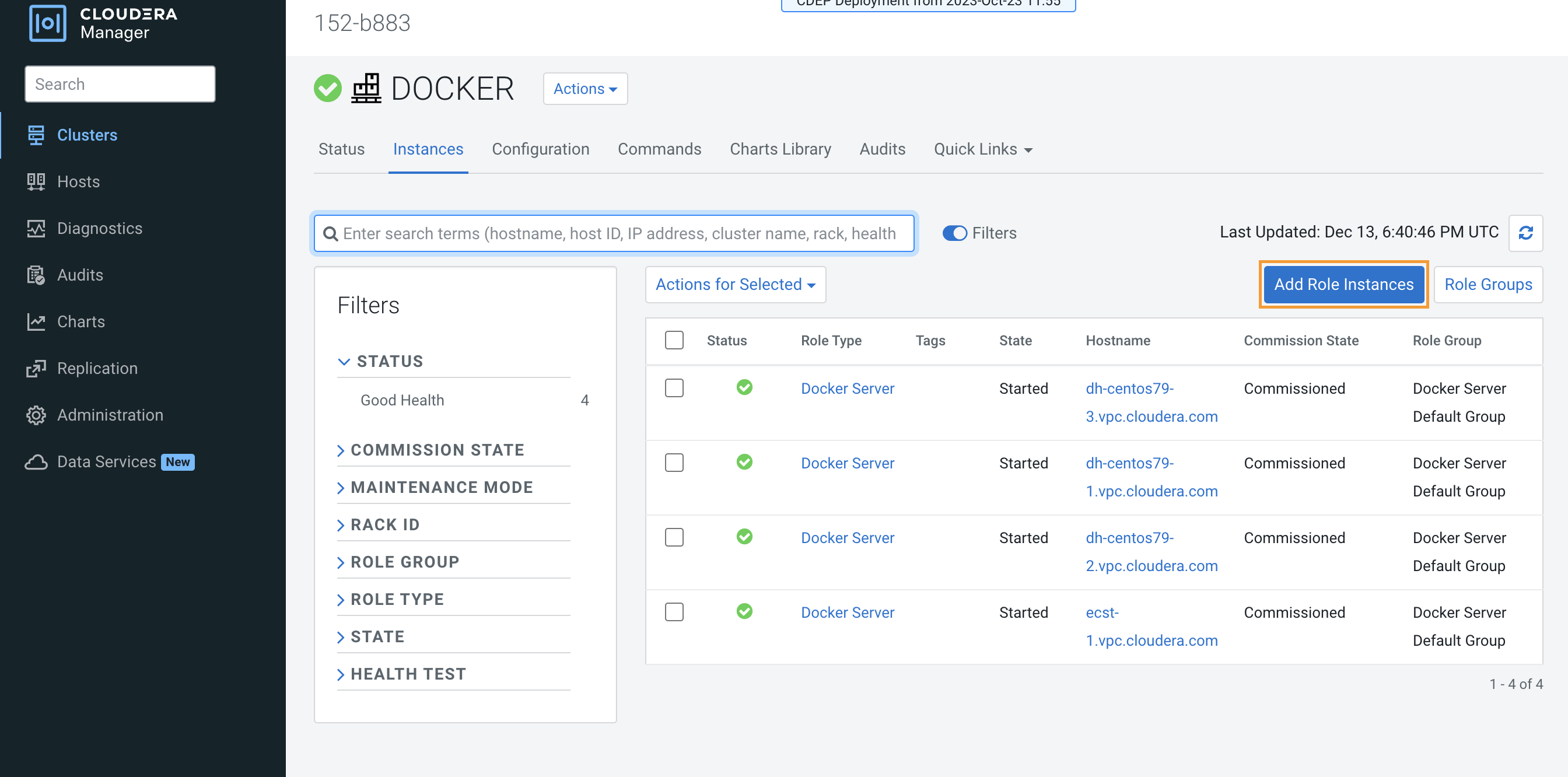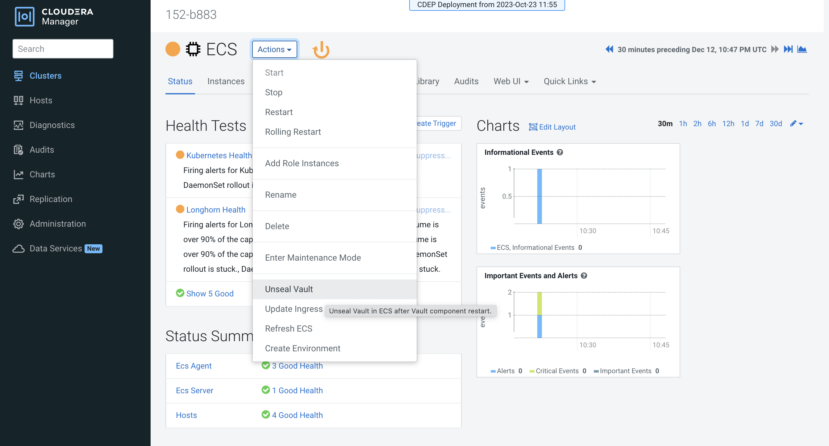On the Cloudera Manager home page, click the ECS Cluster, then select