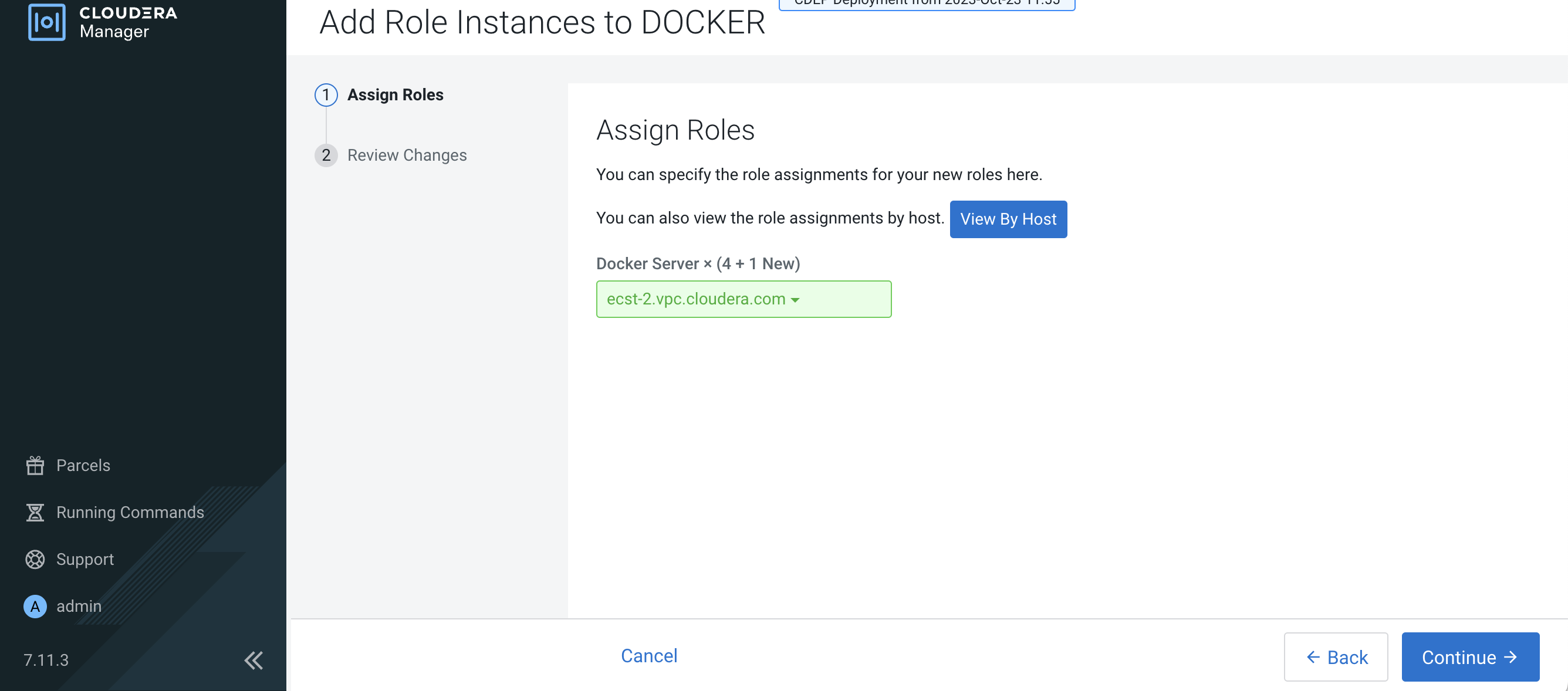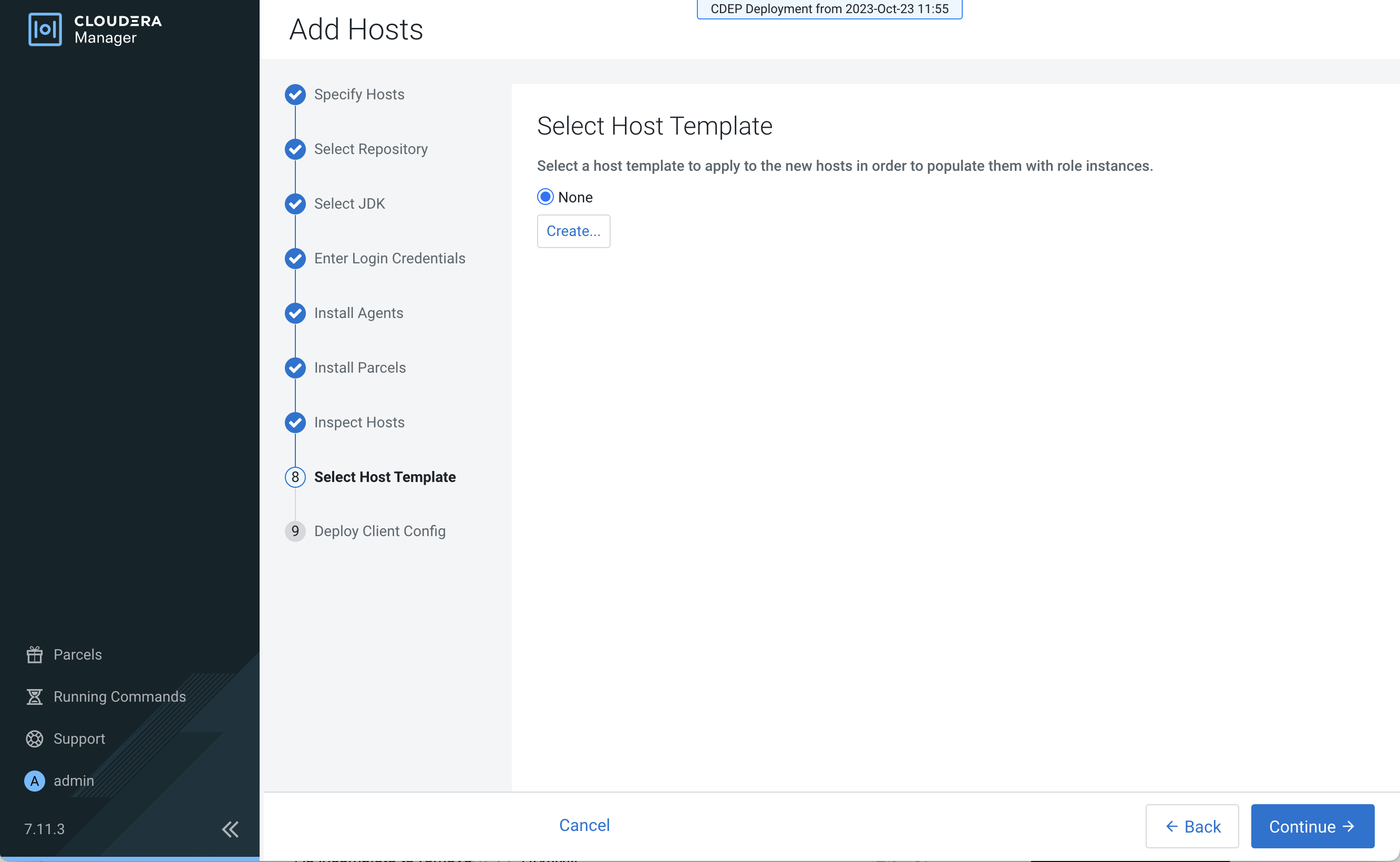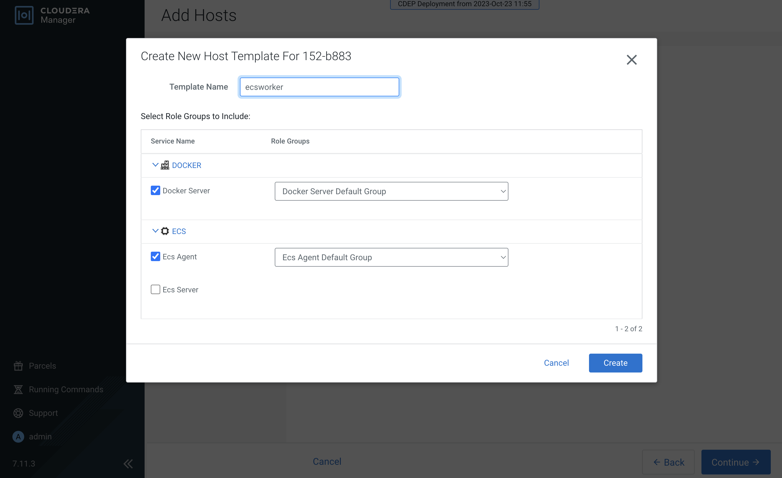 After you have finished specifying the ECS hosts, click Continue.