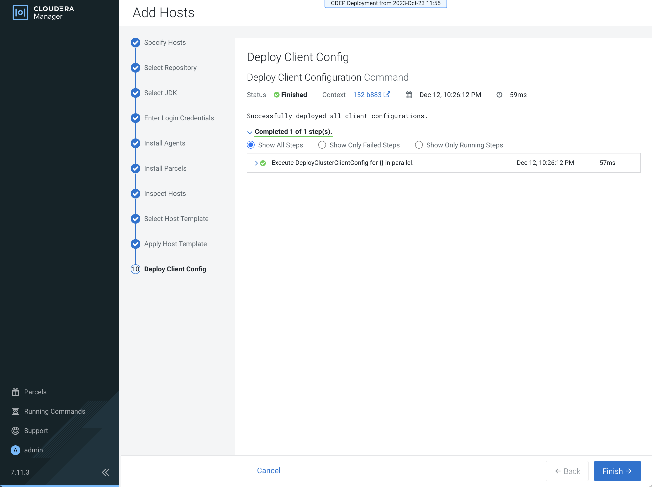 The Deploy Client Config page appears. After all client configurations have been