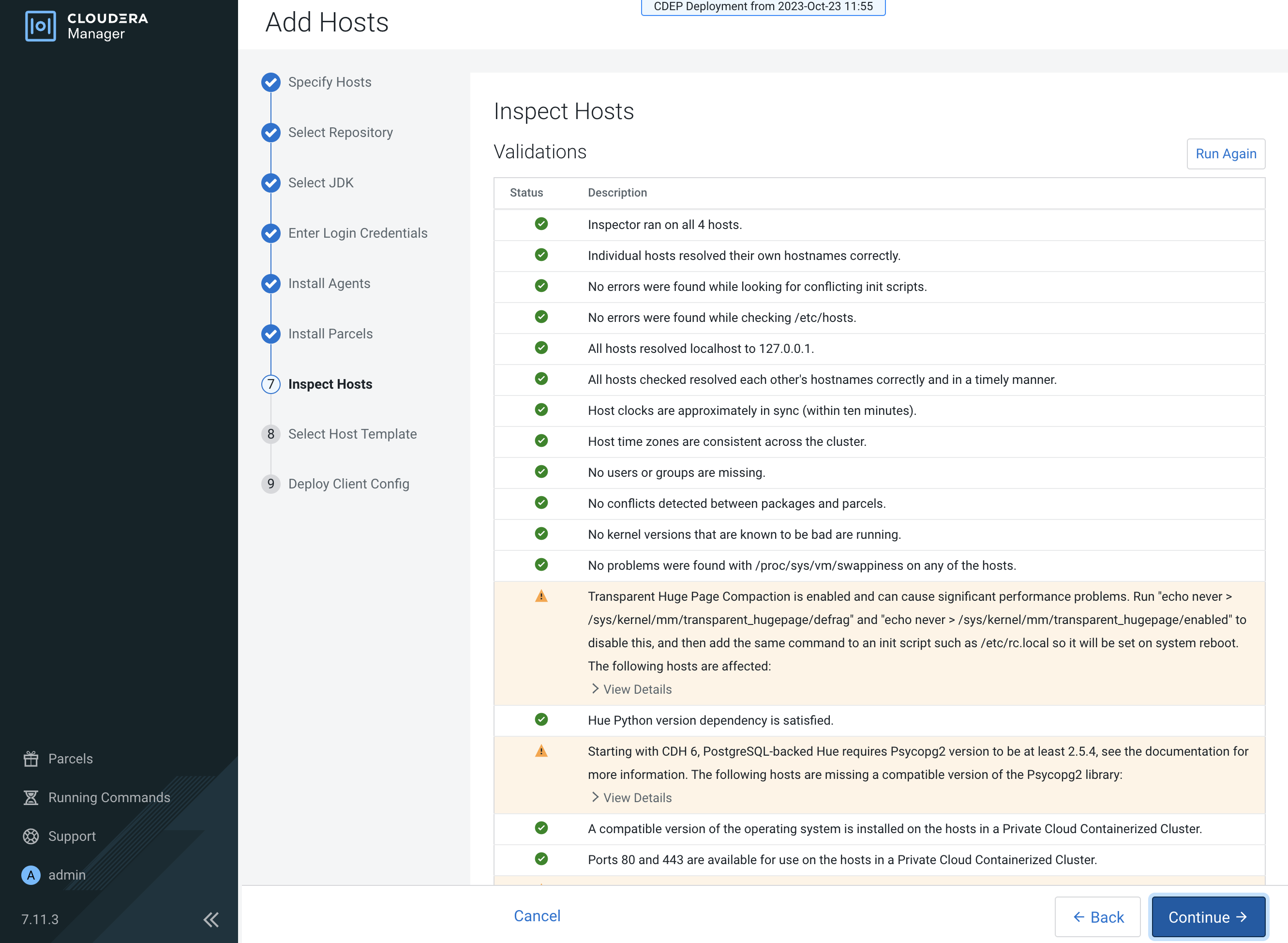 fix the issues, then click Run Again to repeat the host inspection.
