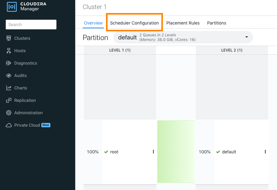 After upgrading to Cloudera Base on premises, you must configure the Capacity Scheduler properties using the output files generated by the fs2cs conversion utility. You can configure the properties manually using the YARN Queue Manager UI service.