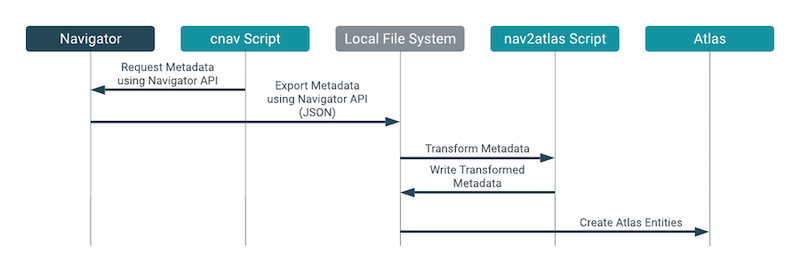 cnav.sh) that calls Navigator APIs to extract all technical and business metadata from Navigator. The process takes about 4 minutes per one million Navigator entities. The script compresses the result and writes it to the local file system on the host where the Atlas server is installed. Plan for about 100 MB for every one million Navigator entities; lower requirements for larger numbers of entities. - Transforming the Navigator metadata into a form that Atlas can consume.