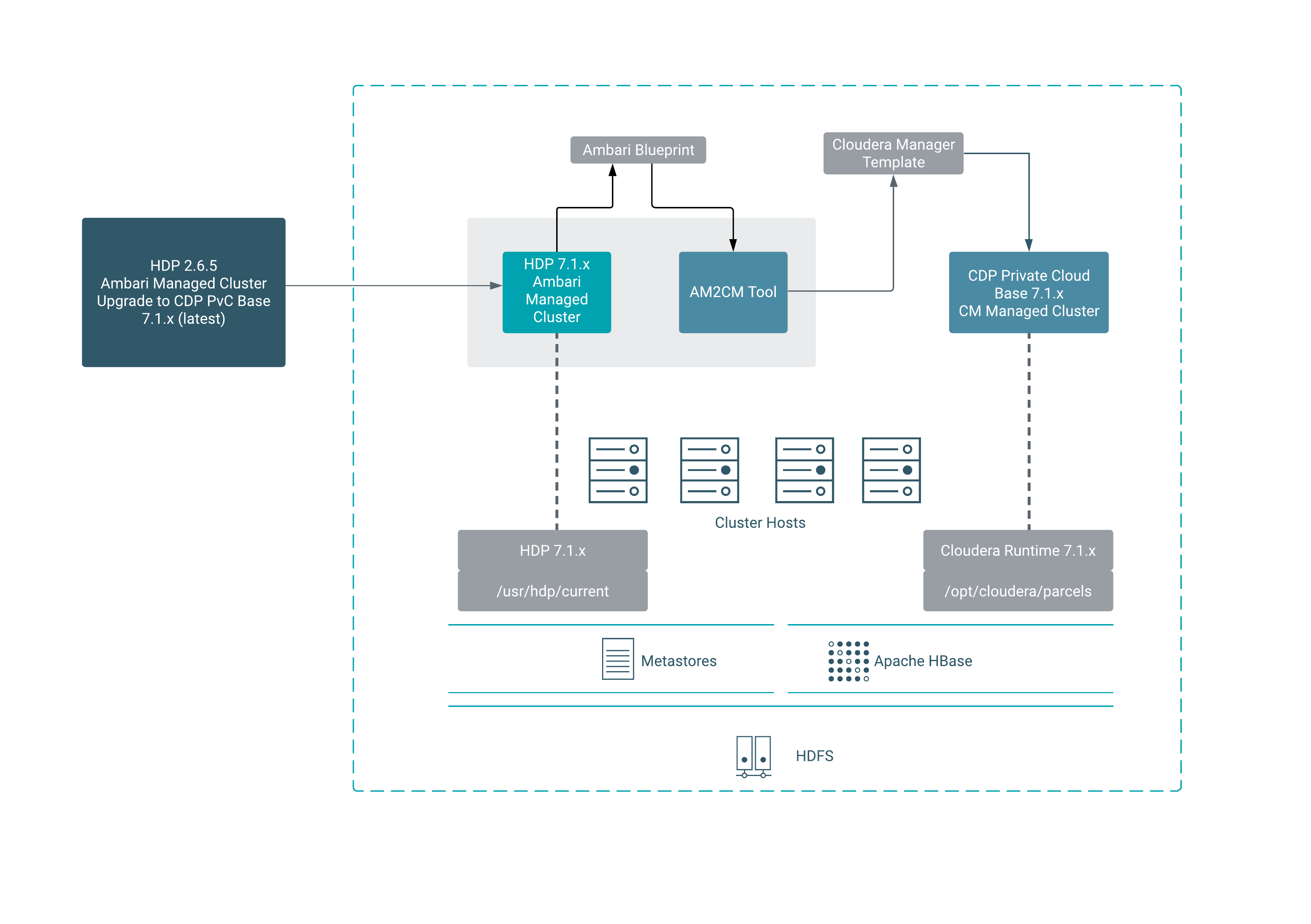 To plan your upgrade from Ambari managed HDP 2.6.5 to Cloudera Private Cloud Base, you must be aware of the two stages of in-place